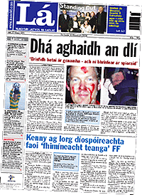 TACAÍOCHT: Scata d'fhearaibh an Oireachtais agus iad gan a bheith ag cur fiacal foclach ina dtuairimí faoi Shell Ireland. "Amach, Amach a Shliogáin!"